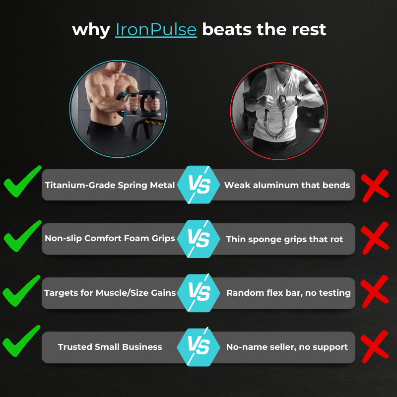Experience the IronPulse difference — a compact powerhouse designed to target your chest, arms, and shoulders. Whether you're battling stubborn moobs or aiming to build upper body strength, IronPulse delivers noticeable results in just minutes a day.